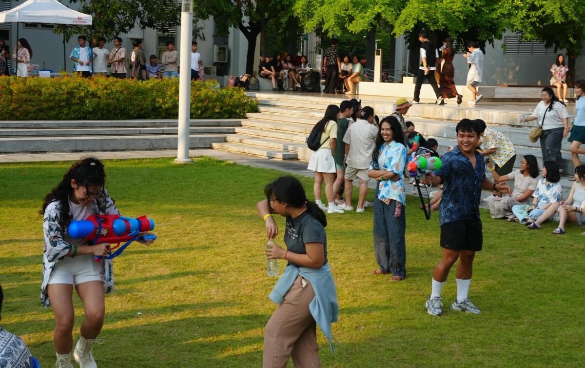 Thingyan water fight on campus — nobody was trying to look good, and that’s exactly why it worked.